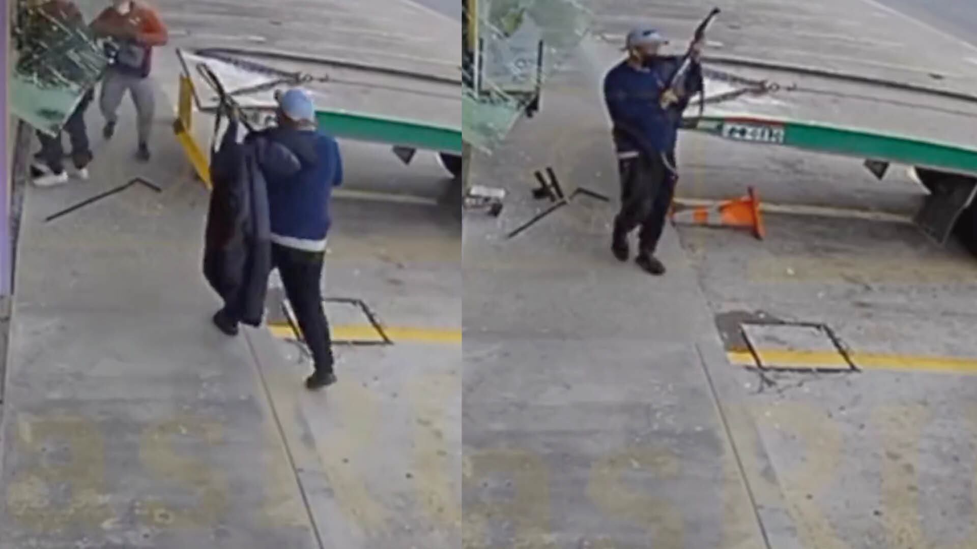 Tras el impacto, entre tres desprendieron el vidrio y otro era como una especie de campanero; portaba una escopeta. Un quinto sujeto, era el que conducía el automotor y se bajó para ayudar a sus compañeros a robar.