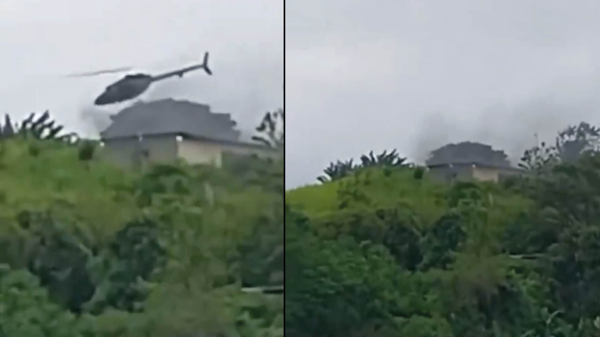 En las imágenes se observa como un helicóptero de la Policía sobrevuela la guarida donde se refugiaban delincuentes. Se trata, según se ve, de una estructura rodeada de vegetación. Desde ese lugar sale humo y no hay personas.