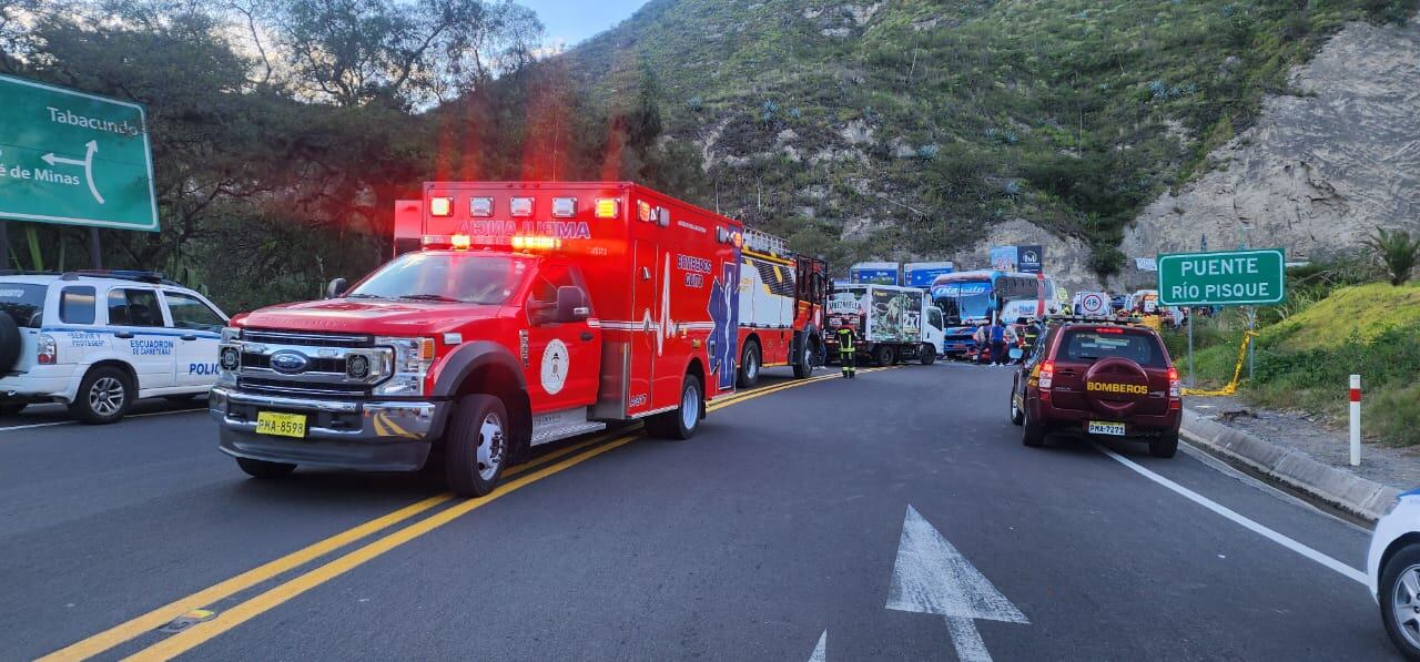 La tarde de este domingo 21 de enero un siniestro, que afectó a decenas de personas, ocurrió en la Panamericana E28, a a altura del río Pisque. El Cuerpo de Bomberos de Quito atendió la emergencia donde no se reportaron víctimas mortales.