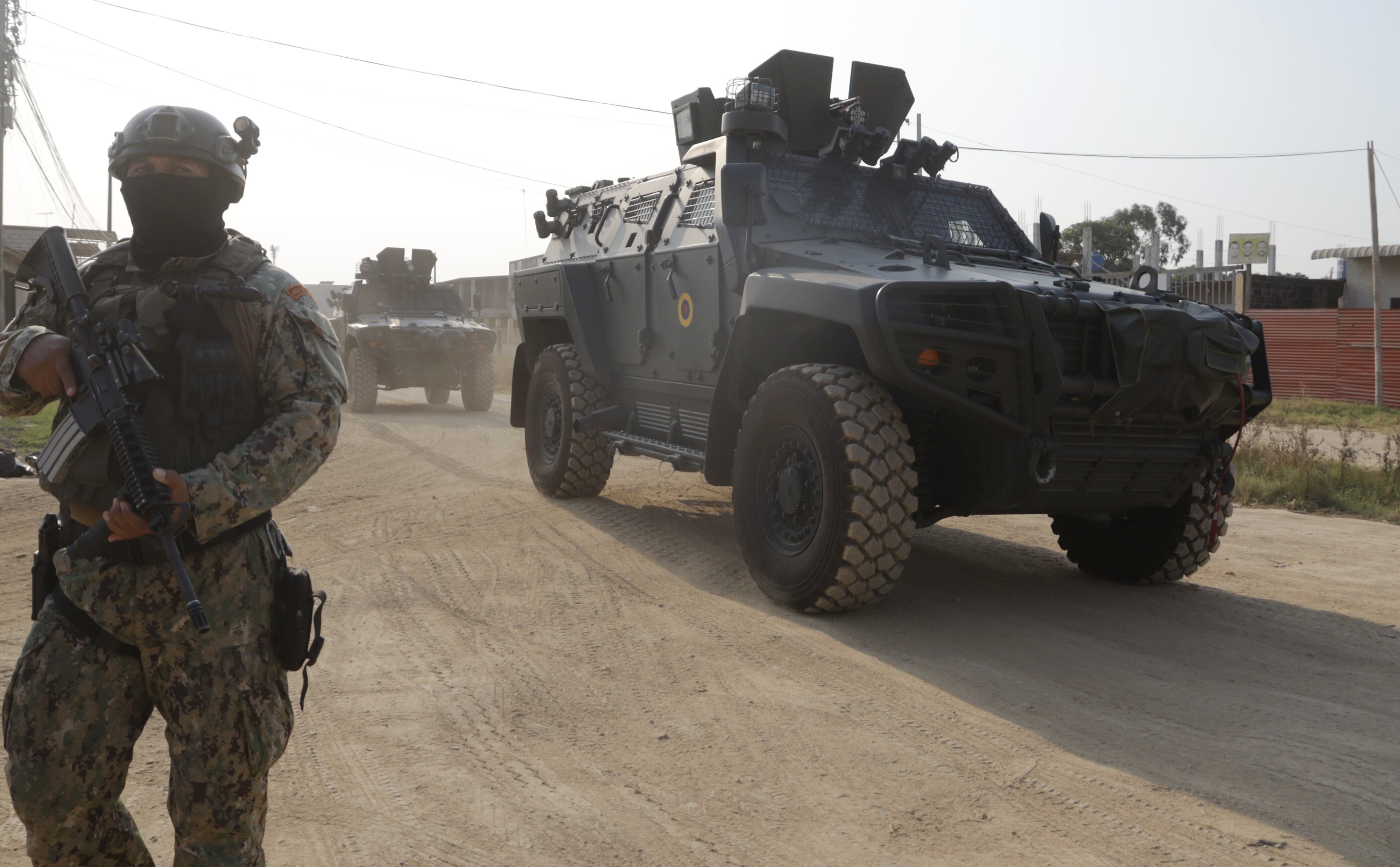 Operativo militar en Durán Durán, viernes 29 de septiembre 2023 Las operaciones militares con la ayuda de los vehículos Cobra II se extienden a sectores dónde según sus moradores no ingresa la Policía, en la gráfica un contingente militar recorre la coop. Cali Murillo. Fotos:/API (API)