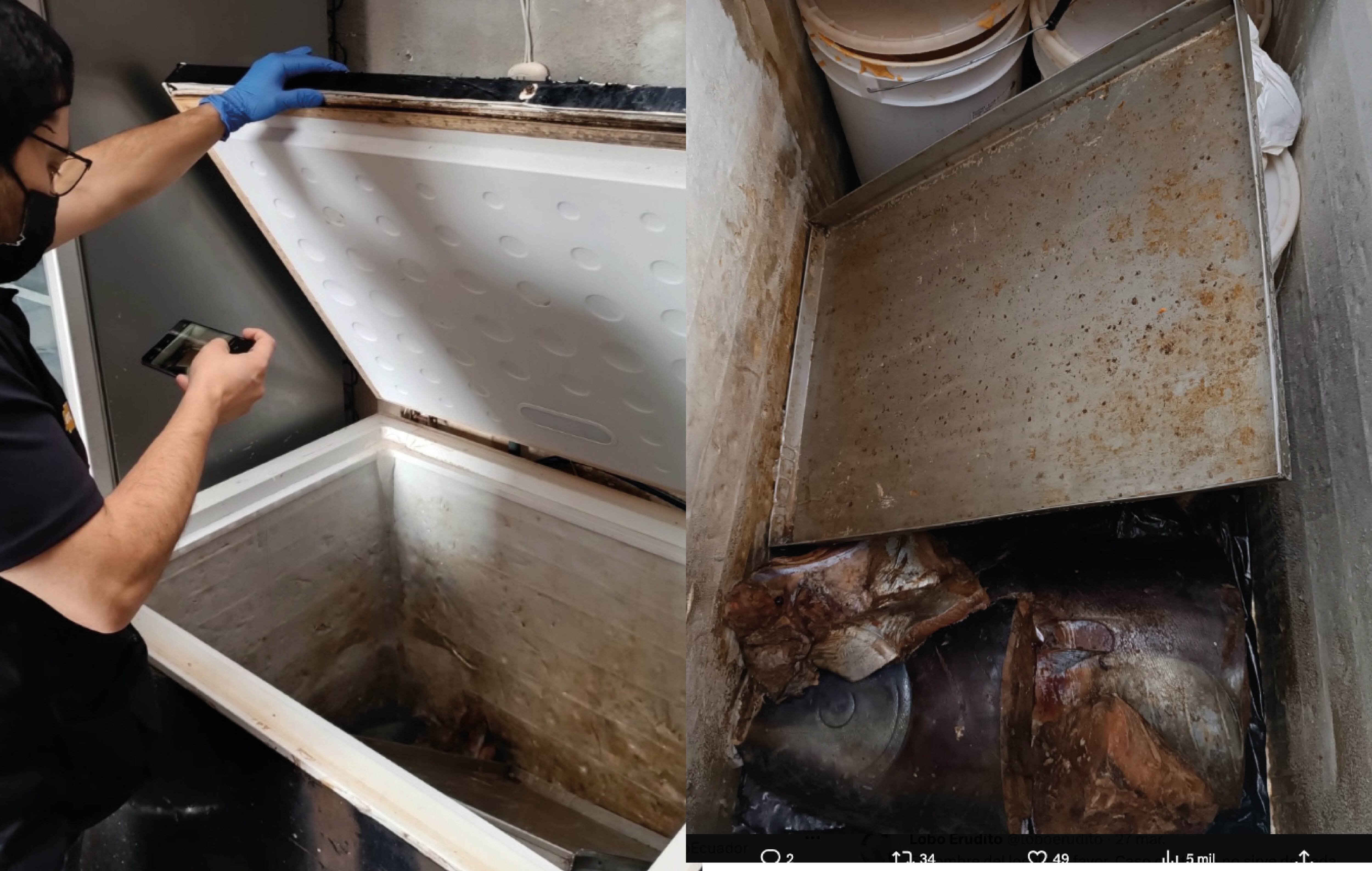 Debajo de los congeladores se hallaron restos de comida con cucarachas vivas y heces de ratones. El incumplimiento de la salubridad puede sancionarse hasta con diez salarios básicos unificados.