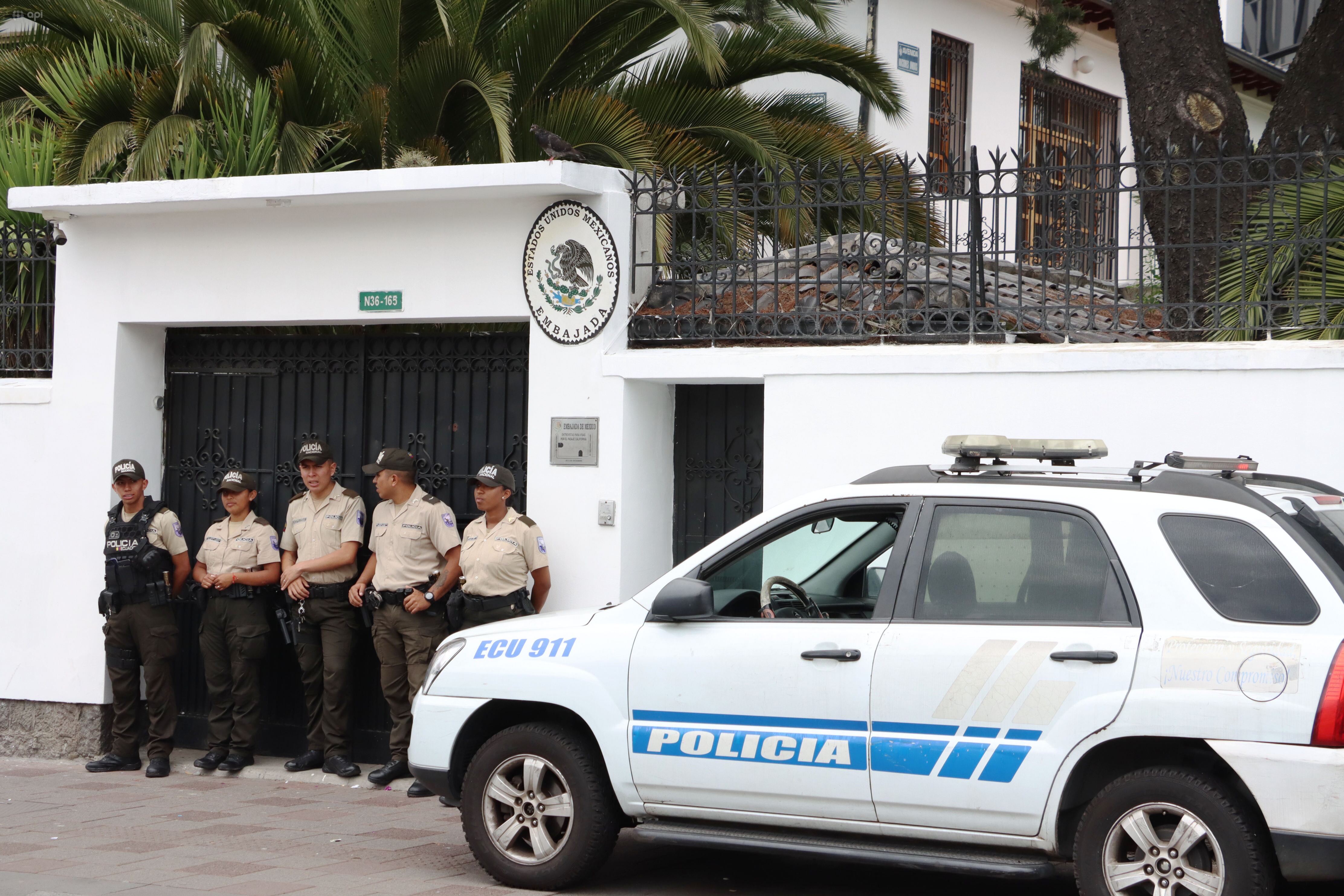 México rechazó la presencial policial en los exteriores de la Embajada, ubicada en el norte de Quito lo que consideran un “claro hostigamiento” a la embajada y una “flagrante violación” a la Convención de Viena sobre Relaciones Diplomáticas.