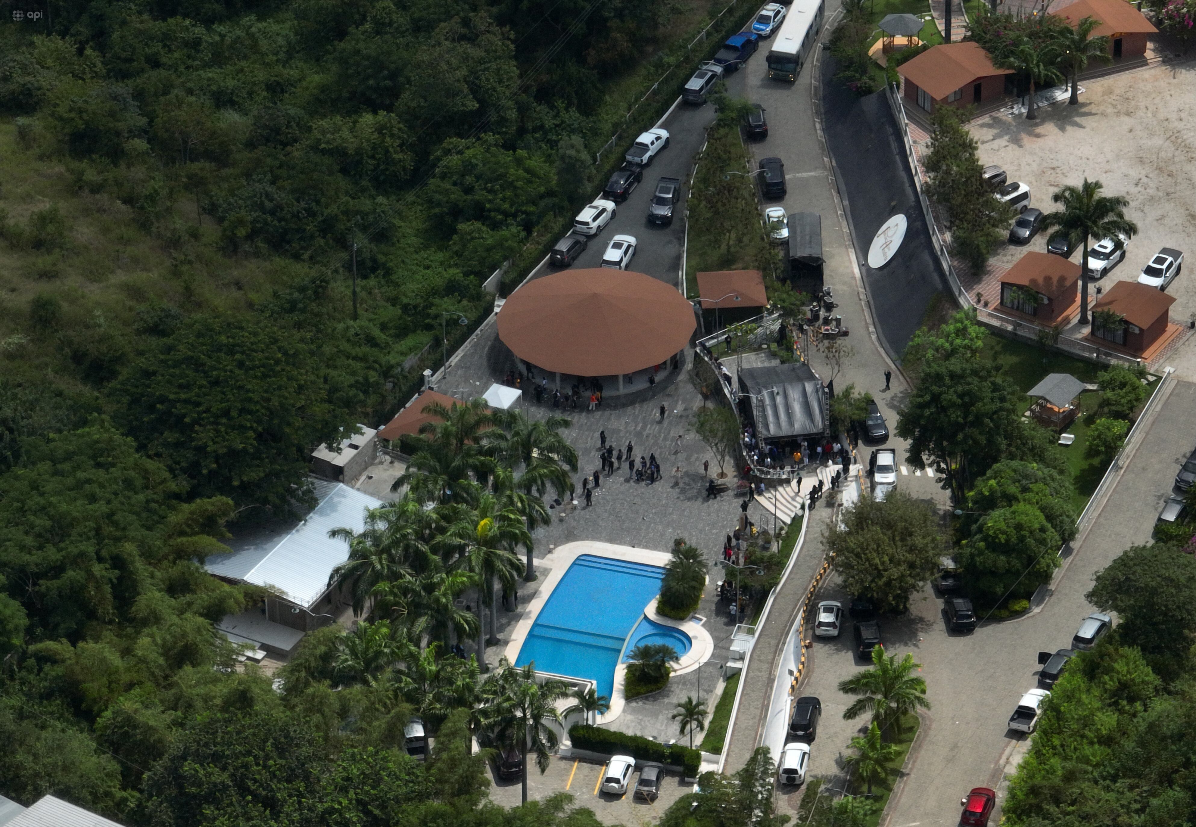 Además, las mesas con botellas de whisky a medio acabar y cajetillas de cigarrillos. En el estacionamiento se ven vehículos de alta gama de los invitados. El lugar cuenta con una piscina grande y se montó una gran escenario para los artistas invitados como Dayanara Peralta, Nelson Velásquez y el doble de Gilberto Santa Rosa, Luis Adolfo Lecuna Leal.