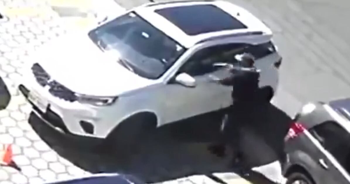 En las imágenes se puede ver a la víctima al interior de un vehículo blanco. De pronto, un sujeto se bajó de un carro negro, se acercó rápidamente a la ciudadana y le apuntó con un arma de fuego.