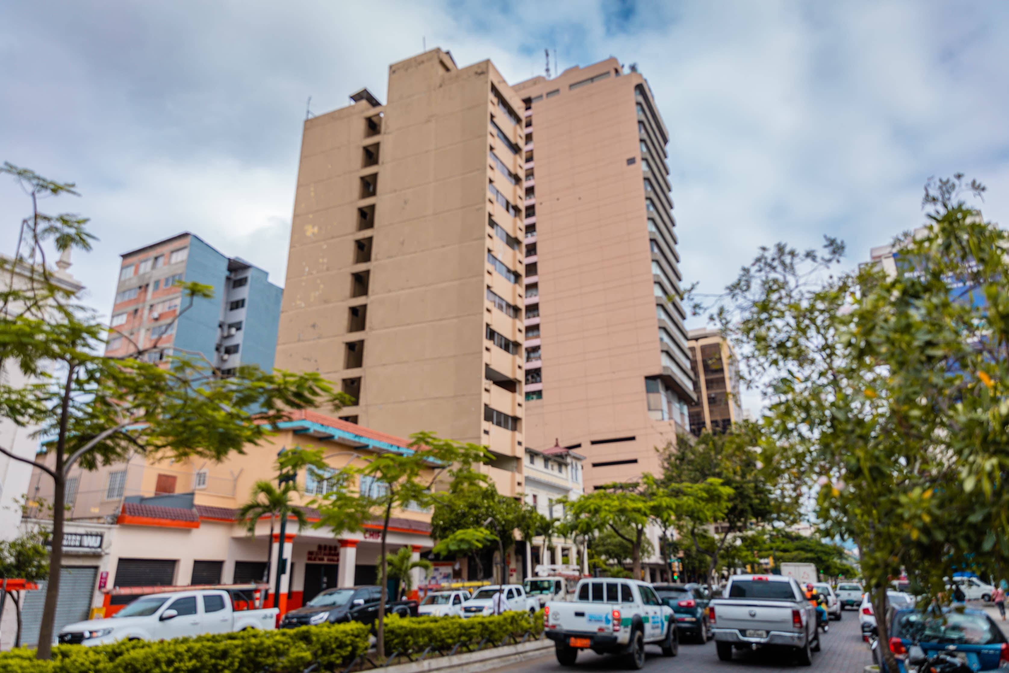 El edificio Fantasía de Guayaquil, una construcción de más de 50 años levantada en la Av. 9 de Octubre y que viene llamando la atención en la ciudad por lo inclinada que luce su infraestructura, es intervenido desde el medio día este viernes 28 de junio por el Municipio de Guayaquil, autoridad que decidió iniciar trabajos de apuntalamiento del edificio debido a la falta de acuerdo de sus dueños.