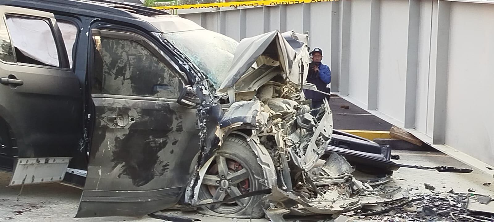 El Cuerpo de Bomberos Quito indicó que un vehículo negro, sin placas, se estrelló contra una una viga del puente elevado que se construye en esa zona. El auto se impactó de frente y comenzó a incendiarse.