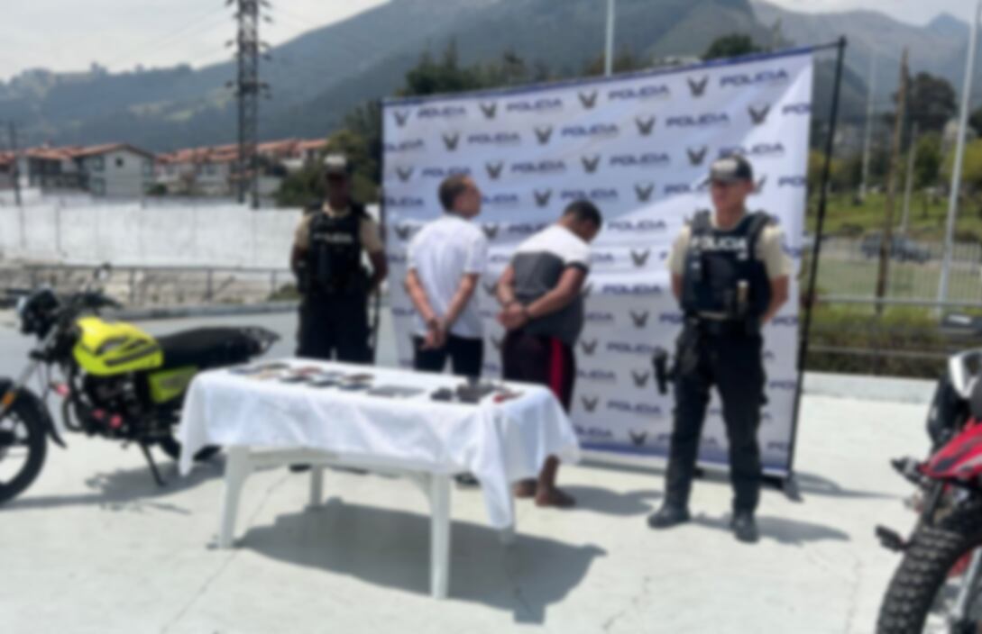 La Policía Nacional de Ecuador informó que detuvo a dos ciudadanos de nacionalidad extranjera en el sector de San Juan, en el Distrito Calderón de Quito, luego de recibir la alerta de un ciudadano que reportó haber sido víctima de robo a mano armada. Según el informe policial, los presuntos asaltantes intimidaron al afectado con armas de fuego para sustraerle su teléfono móvil. Tras el robo, el ciudadano proporcionó a los agentes la descripción de los sospechosos y de la motocicleta en la que se movilizaban.