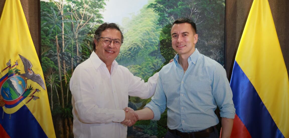 El presidente Daniel Noboa se reunió con su homólogo de Colombia, Gustavo Petro. Esta visita se enmarca en el cumplimiento de una agenda bilateral que tiene como objetivo fortalecer las relaciones entre ambos países, así como abordar proyectos de cooperación energética y de seguridad.