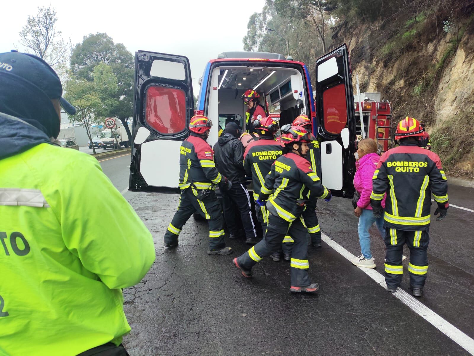 Las unidades especializadas del Cuerpo de Bomberos de Quito y la Agencia Metropolitana de Tránsito efectuaron el trabajo respectivo para liberar a la persona que se encontraba.