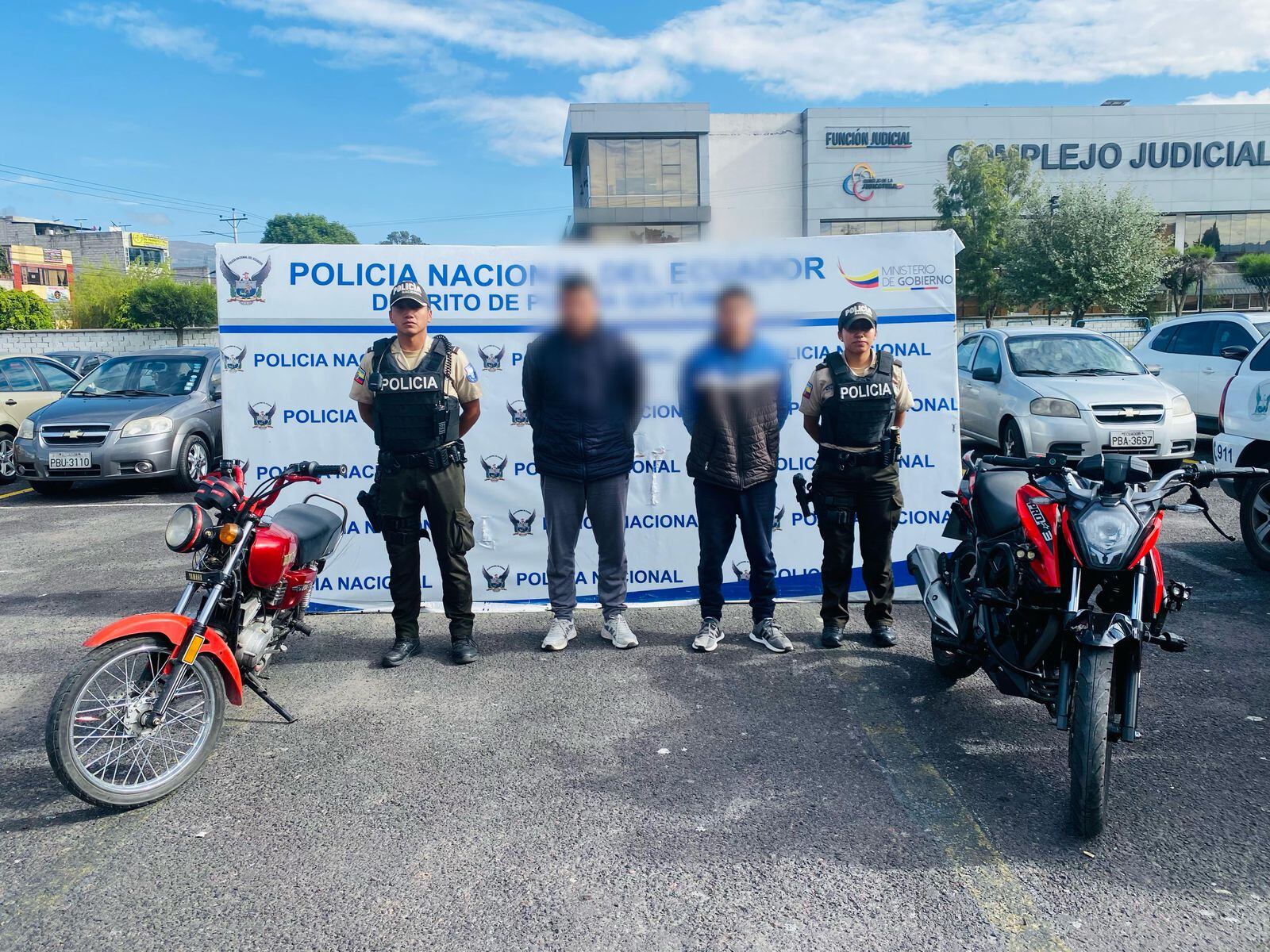 En el sector de La Ecuatoriana, se realizó la aprehensión de dos personas acusadas de robar una motocicleta. Entre los indicios incautados se encuentran la moto robada y una más que será utilizada para fines de investigación.