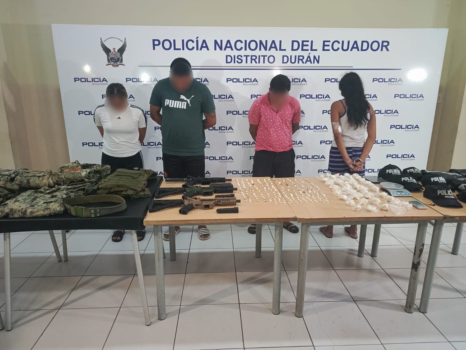 Santamaría, dio a conocer que en el marco del operativo “Tormenta 25”, se realizaron 38 intervenciones en el cantón. Durante los operativos, los agentes decomisaron una camioneta robada del canal TC Televisión y uniformes policiales falsos, presuntamente utilizados en el asesinato de cuatro personas.