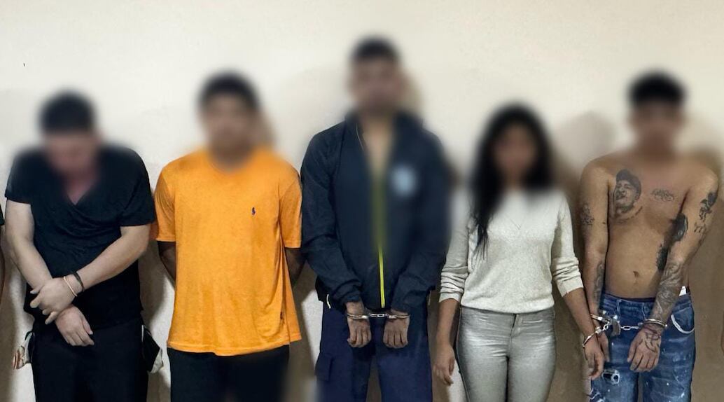 Durante los allanamientos simultáneos en Guayaquil y Durán, las autoridades lograron la aprehensión en flagrancia de los extorsionadores: Josué Abraham E. O. (23), Luis David R. C. (20), Aldair Alexander M. A. (24), Mirexy Noemi B. C. (21) y Josué Daniel M. H. (28).
