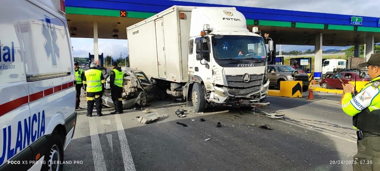 La mañana de este domingo 20 de abril (último día de feriado por Semana Santa) se reportó un siniestro de tránsito en la E35, específicamente en la zona del peaje de Machachi, ubicado en el cantón Mejía.
