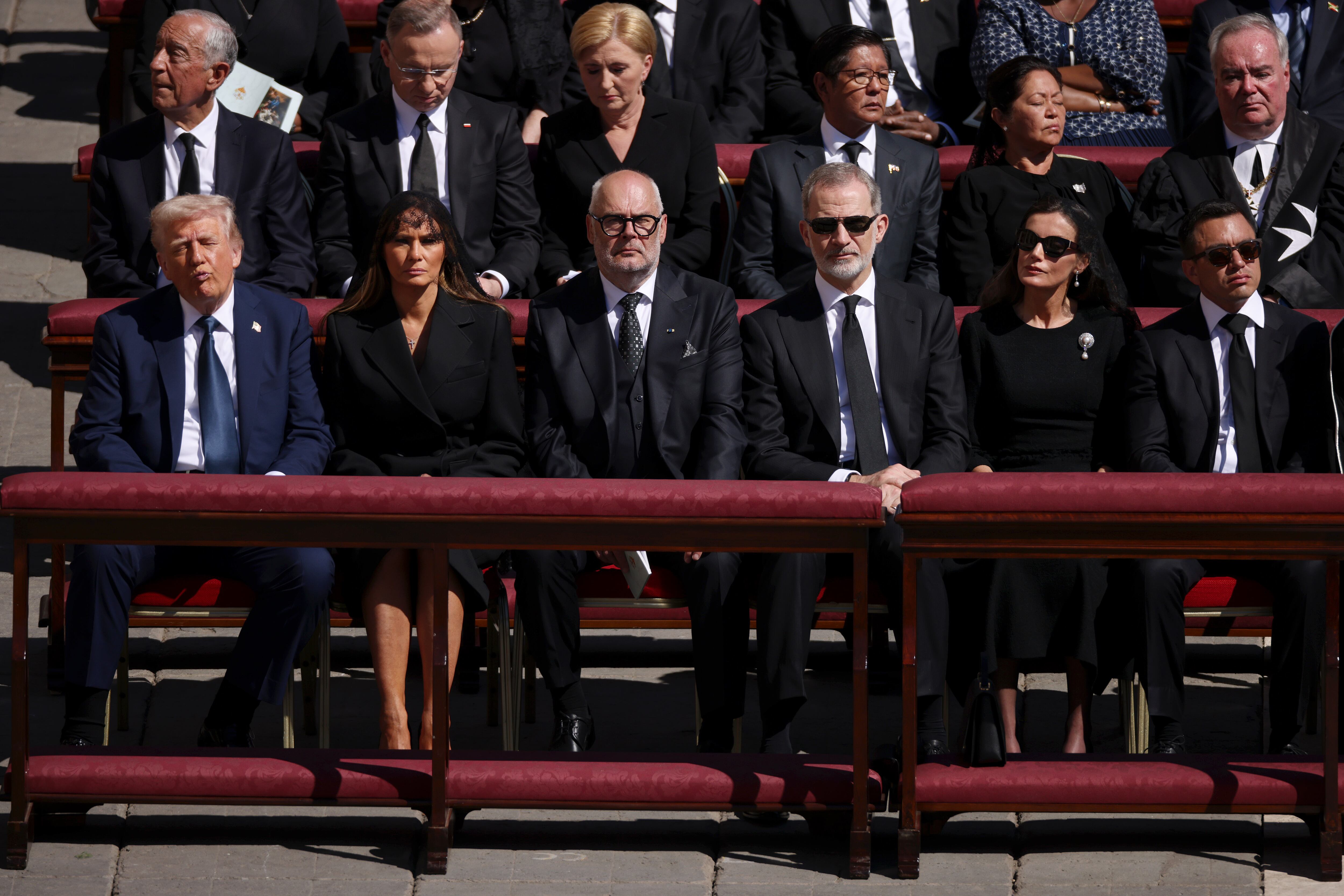 A su lado estuvo el expresidente de Estados Unidos, Donald Trump, acompañado por su esposa Melania Trump. También se encontraban presentes el presidente de Estonia, Alar Karis, y los reyes de España, Felipe VI y Letizia, quienes acompañaron la emotiva ceremonia de despedida.