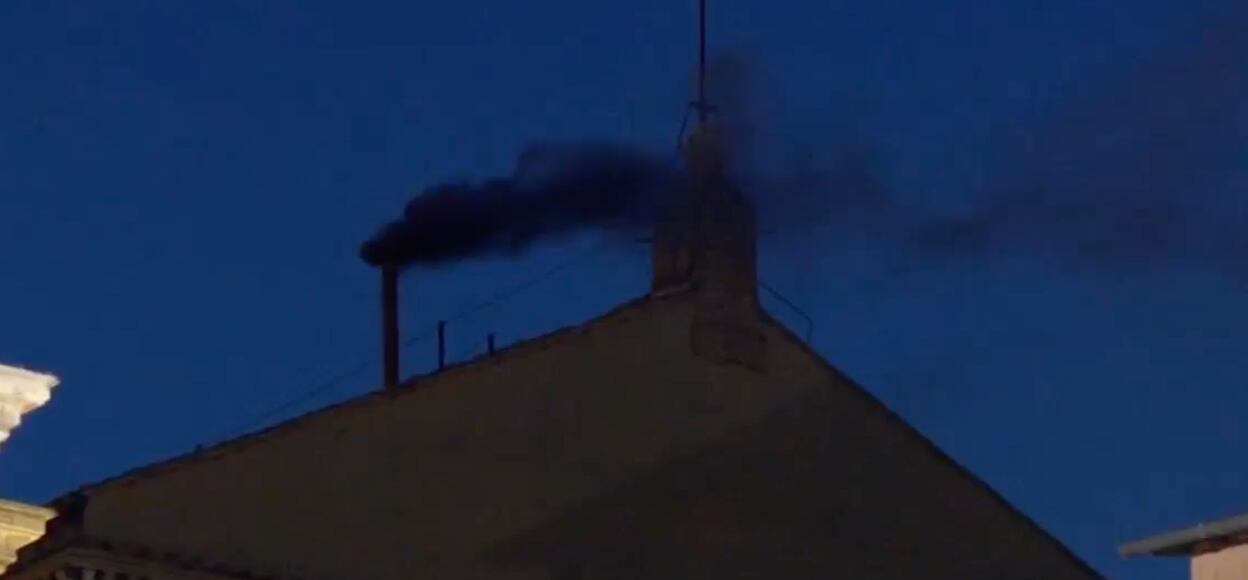 El humo negro comenzó a salir de la chimenea sobre la Capilla Sixtina a las 21.00 horas (14:00 de Ecuador), algo más de tres horas después de que empezara formalmente el cónclave.