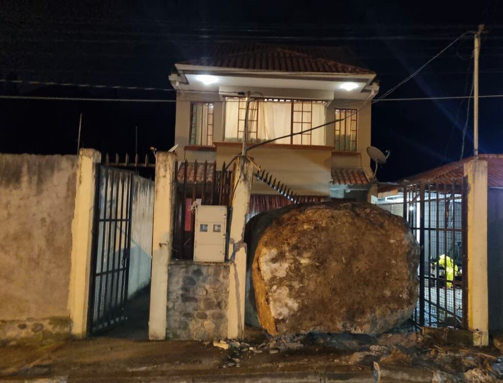 Momentos de angustia vivieron los residentes del sector Lirio, en la parroquia Sayausí, cuando una roca de gran tamaño se desprendió de la montaña, impactando una vivienda de la zona.
