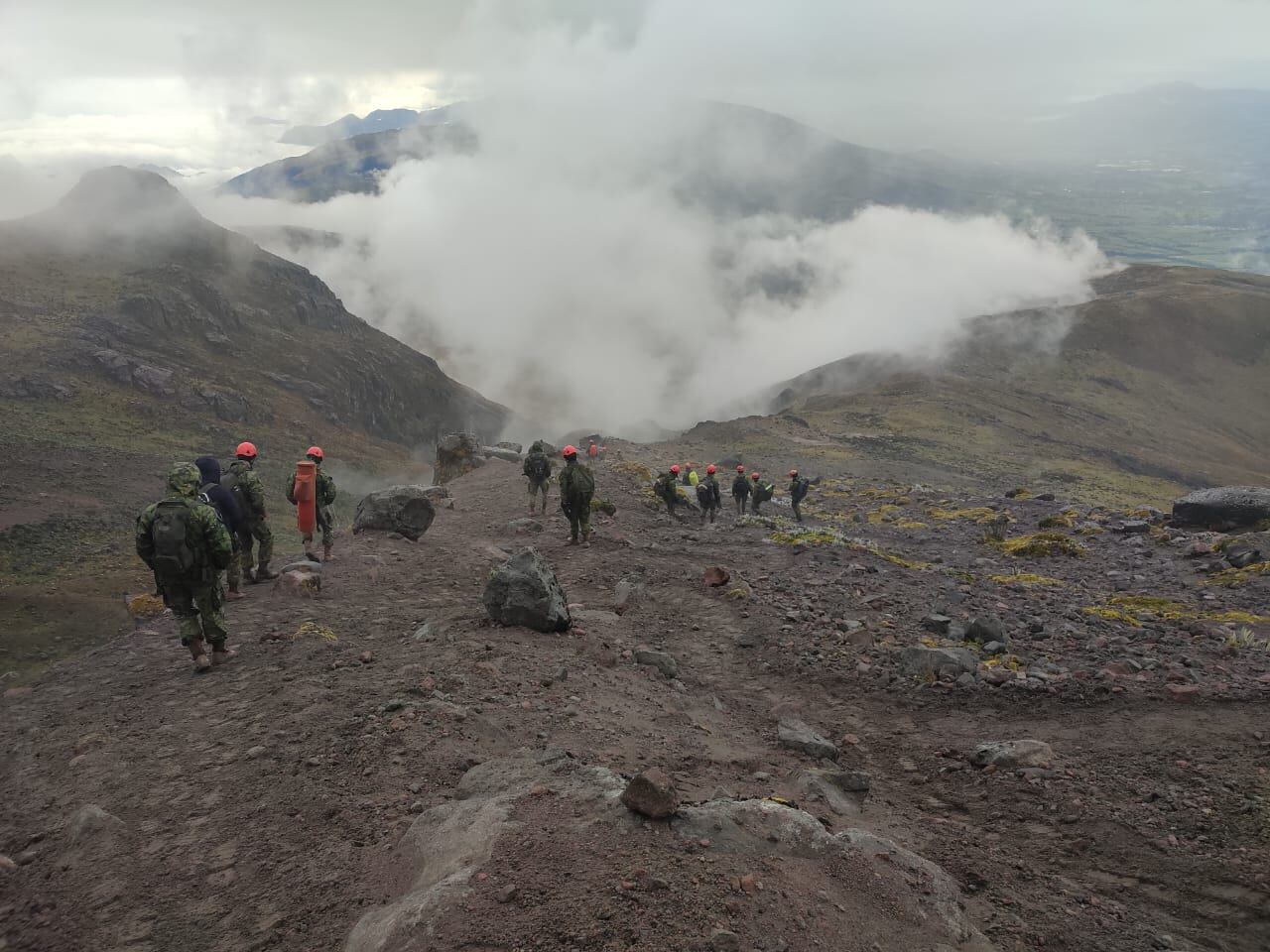 A través de sus canales oficiales, el Ejército Ecuatoriano informó que instructores y alumnos del curso de Andinistas de la Brigada de Fuerzas Especiales N.° 9 Patria se encuentran activamente involucrados en las labores de búsqueda y rescate. Según el comunicado: