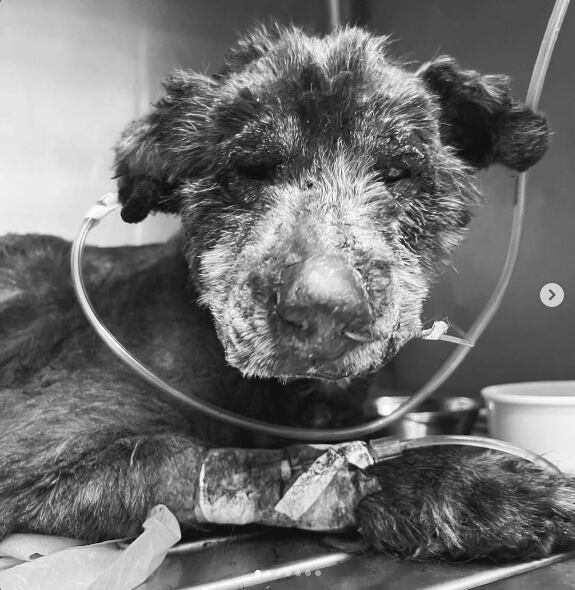 “Sus pulmones están colapsados, sus líneas nasales quemadas y sus córneas heridas. Estas lesiones le provocan un dolor muy grave”, publicó la fundación en Instagram.
