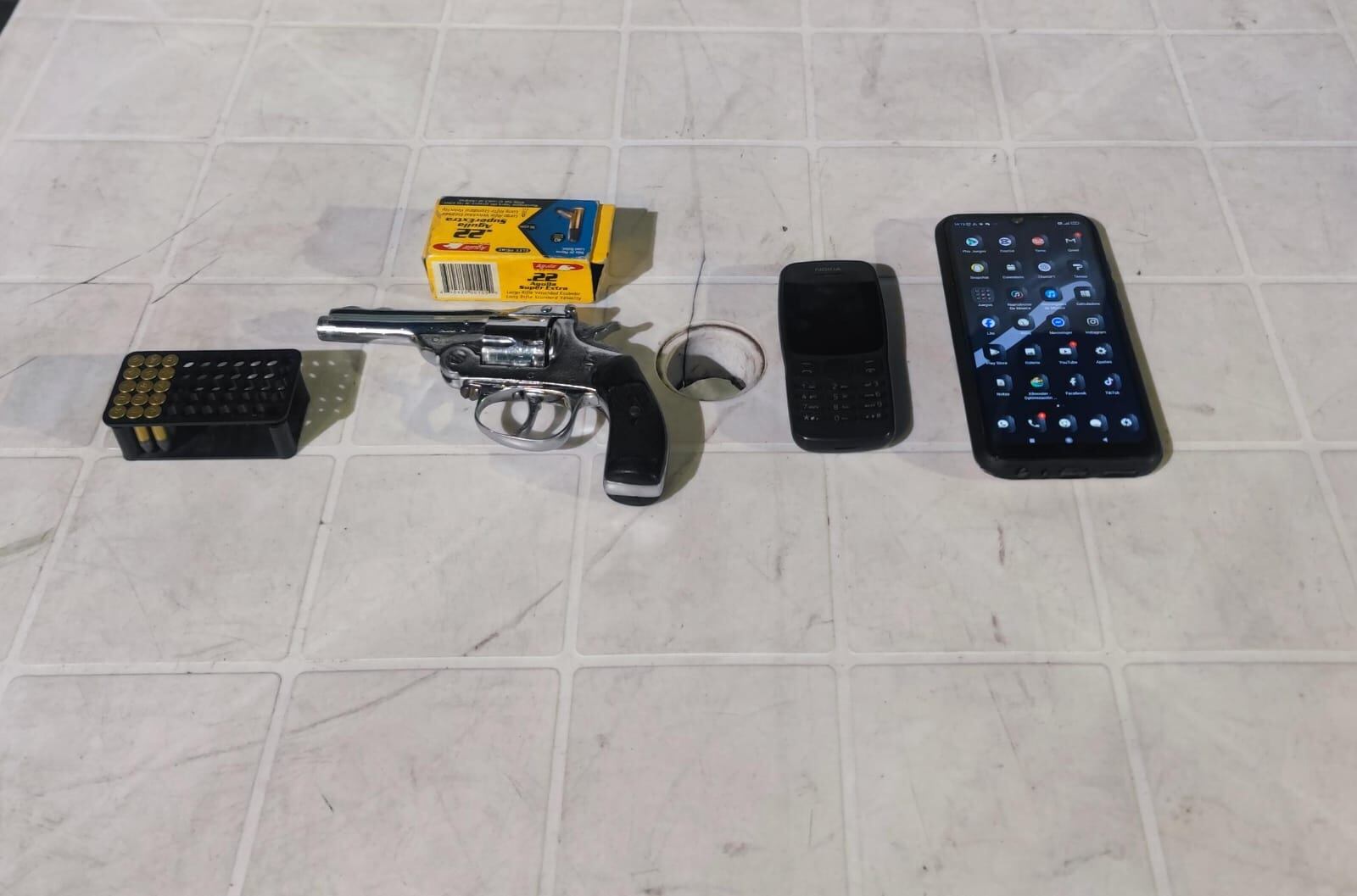 Durante la inspección policial se halló un revólver de fabricación artesanal sobre un escritorio del aula. Además, se encontró una caja con 15 cartuchos sin percutir, calibre 22.