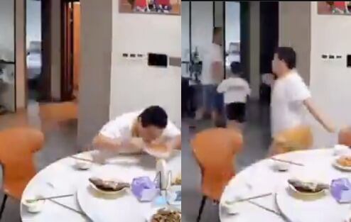 Un terremoto sorprendió a una familia mientras cenaba en casa en Quingyuan, China. Al sentir el movimiento, el padre agarró a su hijo menor y corrió hacia la salida y refugio. El hijo mayor los seguía, pero algo lo hizo volver: ¡su cena!.