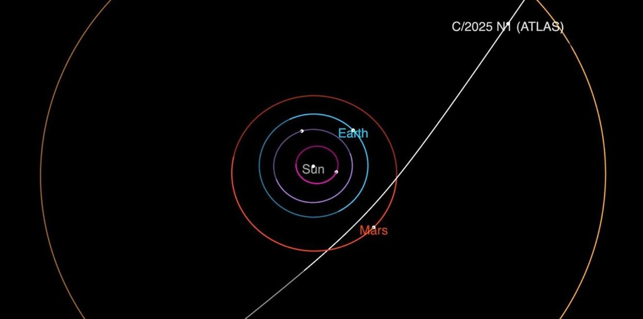 Detectado por el telescopio ATLAS en Chile y respaldado por observaciones del Zwicky Transient Facility, 3I/ATLAS se encuentra ahora dentro de la órbita de Júpiter —aproximadamente 670 millones de km del Sol— y viajará hacia su perihelio el 29–30 de octubre entre las órbitas de Marte y la Tierra.