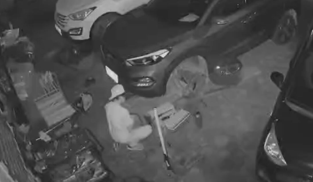 Las cámaras de seguridad del establecimiento captaron el momento exacto en que uno de los sospechosos trepó por el medidor de luz del lugar para ingresar. En las grabaciones internas se lo observa desplazándose por el taller y sustrayendo varios objetos.