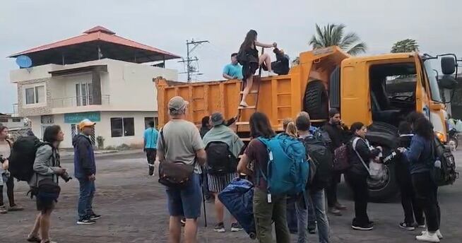 En la isla Isabela, específicamente en Puerto Villamil, decenas de residentes y turistas fueron movilizados hacia zonas seguras en volquetas proporcionadas por el municipio, con dirección hacia San Vicente, área considerada de menor riesgo.