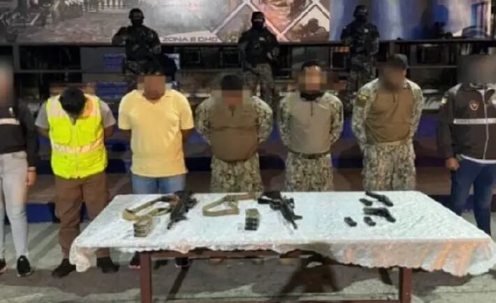 Los tres guardias de seguridad asignados al turno también fueron aprehendidos. En el operativo se incautaron armas de fuego, municiones, celulares y sellos de seguridad.