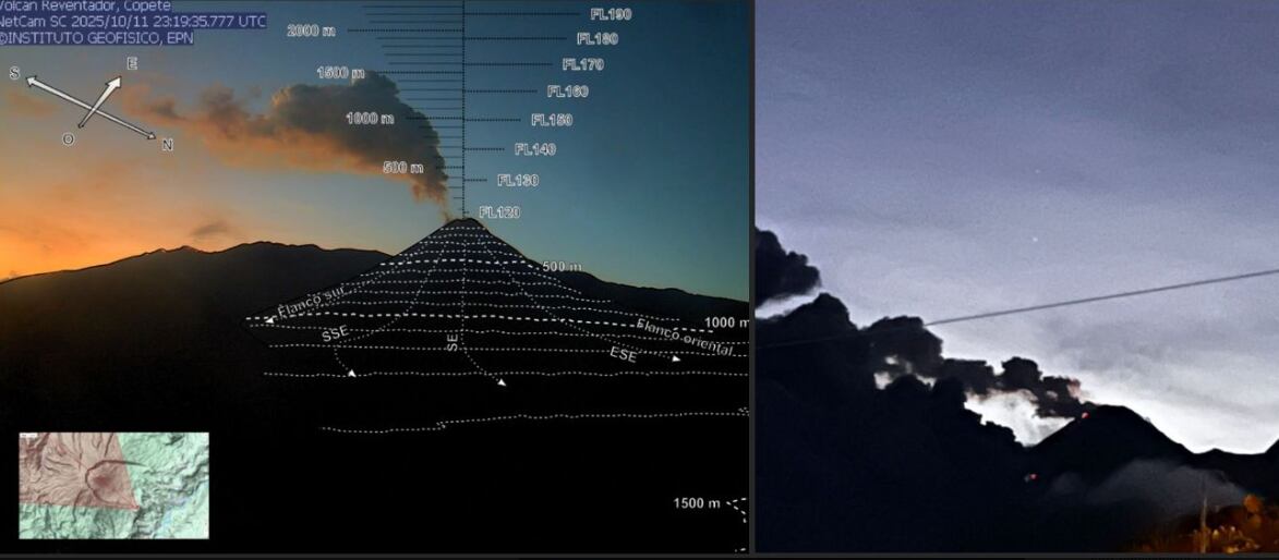 El informe más reciente del IG-EPN describe actividad intensa tanto superficial como interna. Se contabilizaron 15 explosiones, 7 eventos de largo período y 4 episodios de tremor de emisión, lo cual indica presencia persistente de gases, presión interna y movimiento de fluidos dentro del volcán. Las cámaras captaron columnas de ceniza elevándose entre 700 y 1.000 metros sobre el cráter, con dirección predominante noroeste y norte-noroeste.