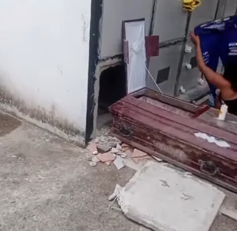 Testigos afirman que la mujer llegó al cementerio con un balde de agua, productos de limpieza, cervezas, cigarrillos y una vela, en lo que parecía un ritual personal para despedir al fallecido. Un video captado por un trabajador del lugar muestra a la mujer junto al ataúd, mientras un vigilante se le acerca y le pregunta: “¿Qué está haciendo?”