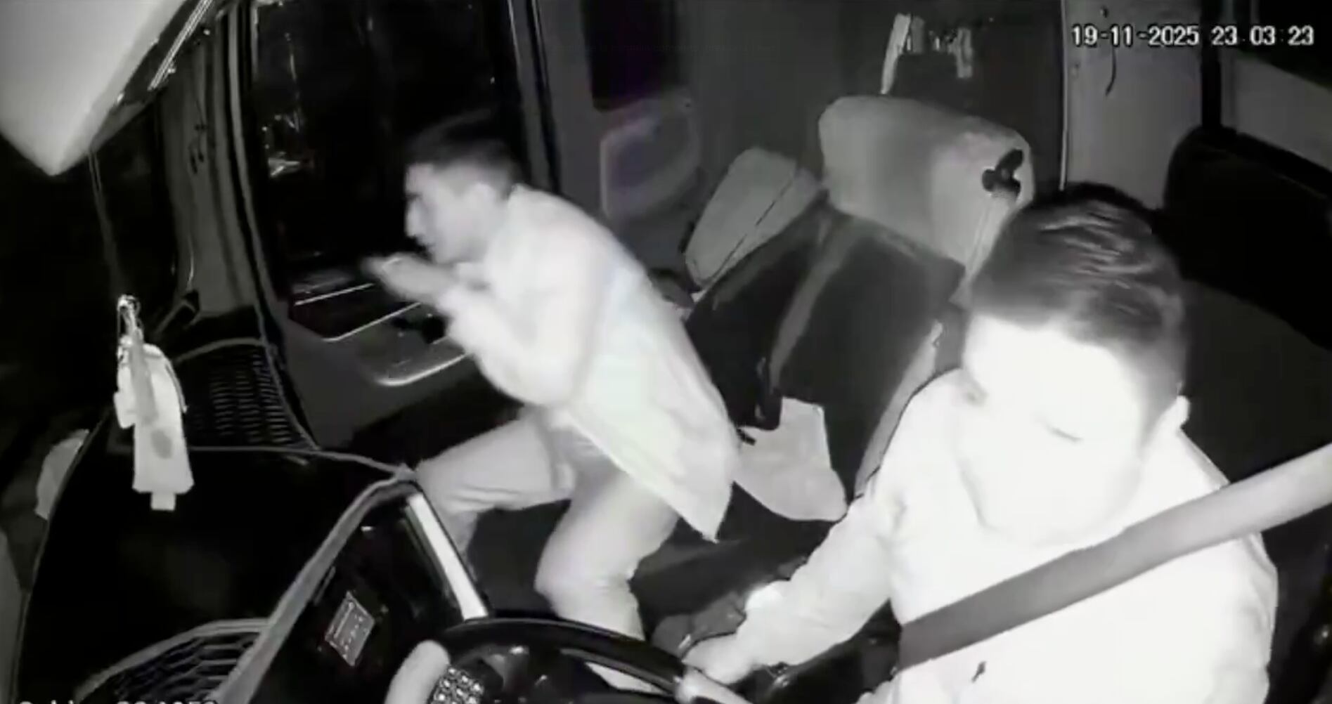 Según se observa en un video de la cámara de seguridad del transporte, dos sujetos armados interceptaron el bus con la intención de robar con violencia. En un primer momento, el copiloto llamó al 911 para pedir apoyo policial, pero ante la inminencia del ataque, el chofer decidió acelerar y maniobrar para evitar que los antisociales subieran al vehículo.