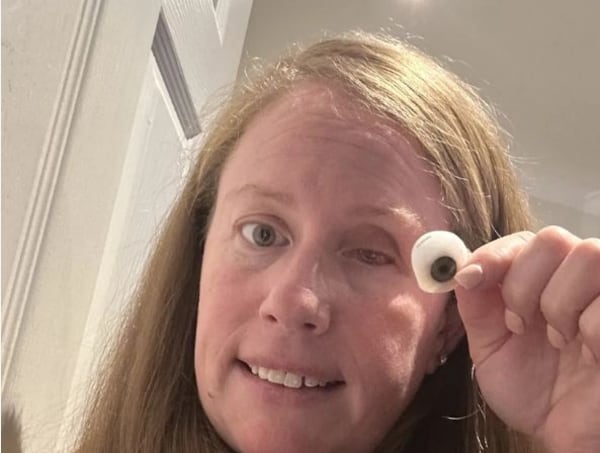Su esposo Mark, de 44 años, junto con otros familiares, percibieron que su ojo se veía anormal.