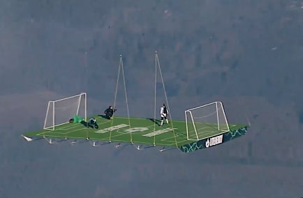 El atleta extremo ruso Sergey Boytsov volvió a sorprender al mundo al liderar un desafío nunca antes visto: jugar un partido de fútbol a 1.800 metros de altura bajo un globo aerostático. La escena muestra una pequeña cancha suspendida por cuerdas mientras los deportistas disputan el balón en pleno aire.