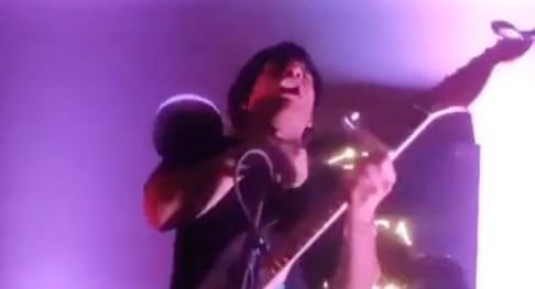 En ese momento, el músico sufre una descarga eléctrica, lo que provoca una reacción inmediata: su mano se contrae y pierde el equilibrio, cayendo hacia atrás sobre uno de los equipos del escenario. En el video también se observan destellos provenientes del micrófono, lo que sugiere una posible falla eléctrica.