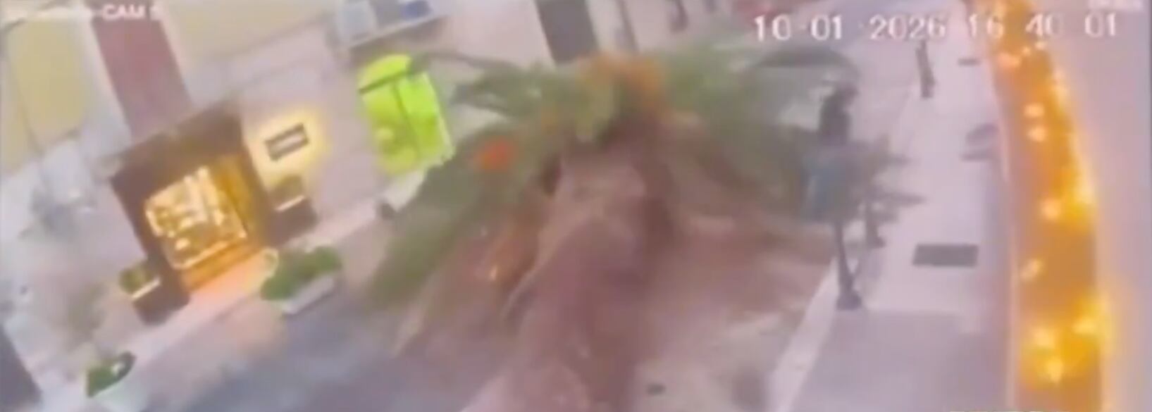 El impactante momento quedó registrado en una cámara de seguridad y rápidamente se viralizó en redes sociales. En las imágenes se observa cómo la palmera cae de manera violenta sobre el automóvil en plena circulación, sin que el conductor tenga oportunidad de reaccionar.