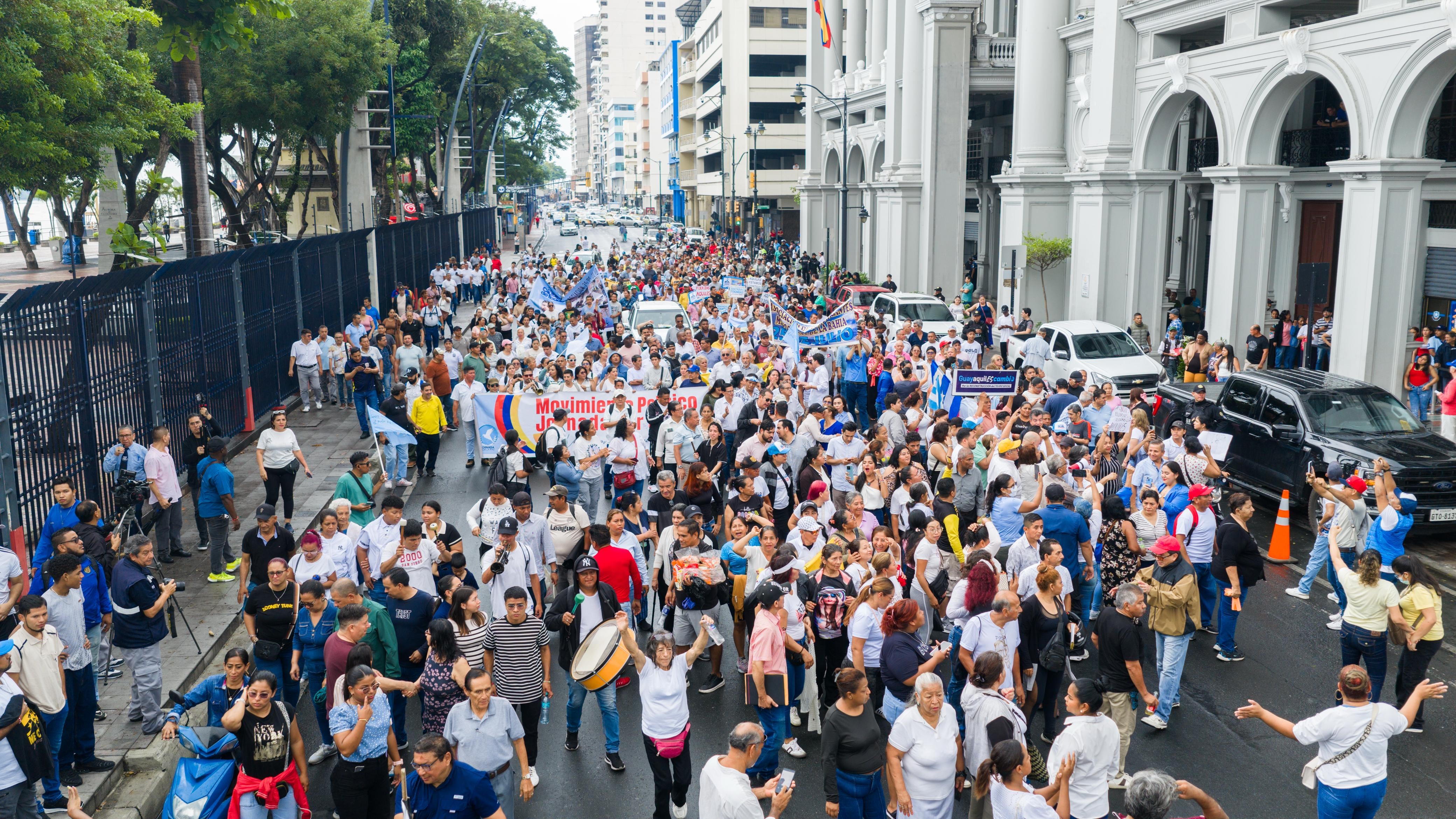 Una nutrida marcha ciudadana, completamente orgánica y espontánea, recorrió este 12 de enero, la avenida República de Guayaquil hasta llegar al Palacio Municipal para expresar un contundente respaldo al alcalde Aquiles Alvarez.