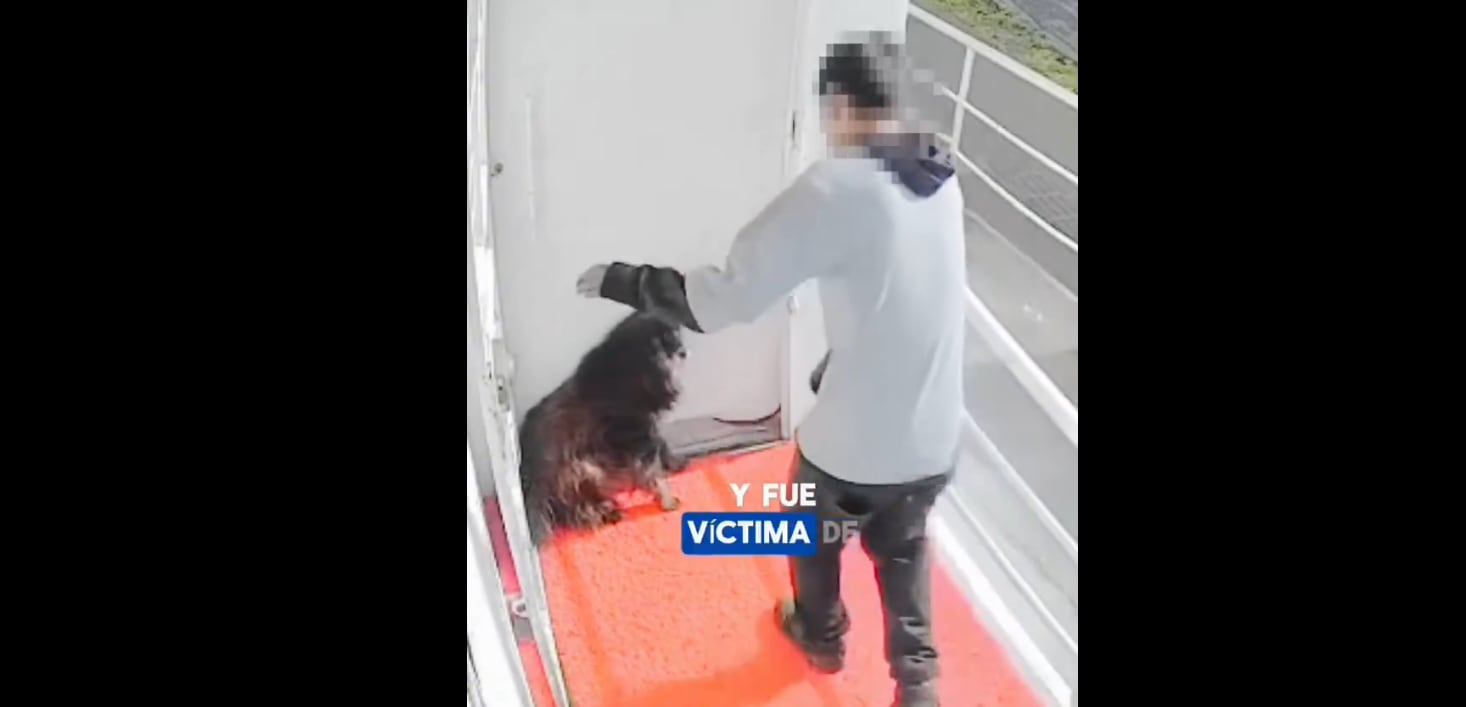De acuerdo con la denuncia formal presentada ante la Unidad de Bienestar Animal (UBA), un residente del sector logró captar el momento en el que el perro corre hacia la puerta de una casa mientras es perseguido por un joven.