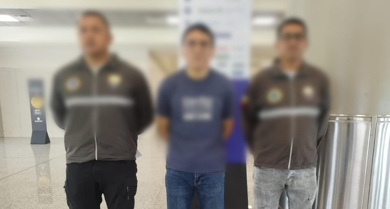 El procedimiento se desarrolló en el área de arribos internacionales del aeropuerto de Quito, tras labores de perfilación que permitieron identificar a un ciudadano procedente de Estados Unidos. Luego de la verificación en los sistemas informáticos, se confirmó que Remigio C. registraba una orden de detención y dos procesos judiciales por el mismo delito.