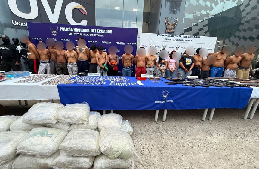 Durante las intervenciones, los uniformados capturaron a 17 hombres y 3 mujeres, todos de nacionalidad ecuatoriana. Según el reporte oficial, cuatro de los detenidos poseen un historial delictivo que incluye delitos graves como homicidio culposo, robo, tenencia de armas y tráfico de drogas.