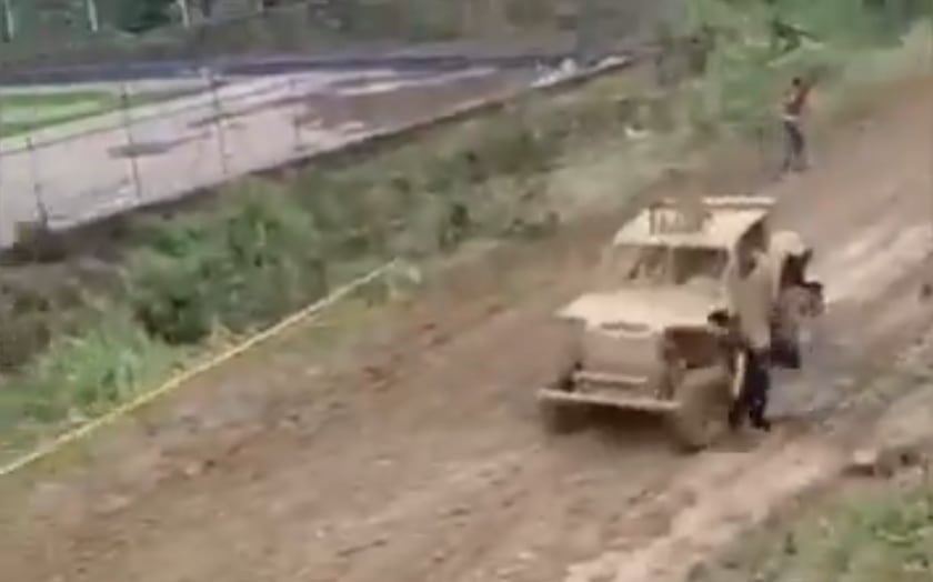 El automóvil salió de la vía a gran velocidad, impactó contra varios espectadores que se encontraban en el lugar y posteriormente cayó por un desnivel de considerable altura. La fuerza del choque provocó que tanto los ocupantes del vehículo como algunos asistentes fueran lanzados por el aire, terminando en una zona fangosa.