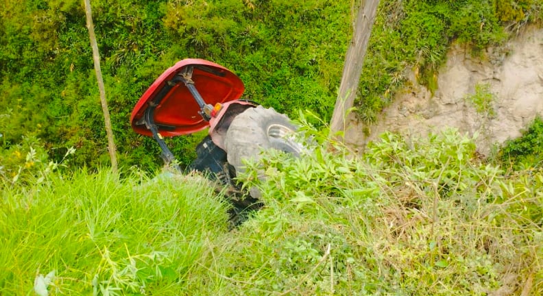 Un siniestro de tránsito se registró la mañana de este martes en el sector de Tenerías, parroquia Nono, en el Chocó Andino, cuando un tractor que realizaba labores agrícolas cayó a una quebrada de aproximadamente 150 metros de profundidad.