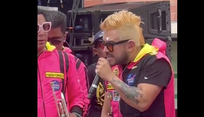 Sin embargo, en Ambato, ciudad que celebra el tradicional Fiesta de las Frutas y las Flores, la jornada tuvo un momento tenso. Mientras la agrupación ofrecía su espectáculo artístico sobre un vehículo, varios ciudadanos comenzaron a lanzar “carioca”, una espuma característica de los festejos de Carnaval.