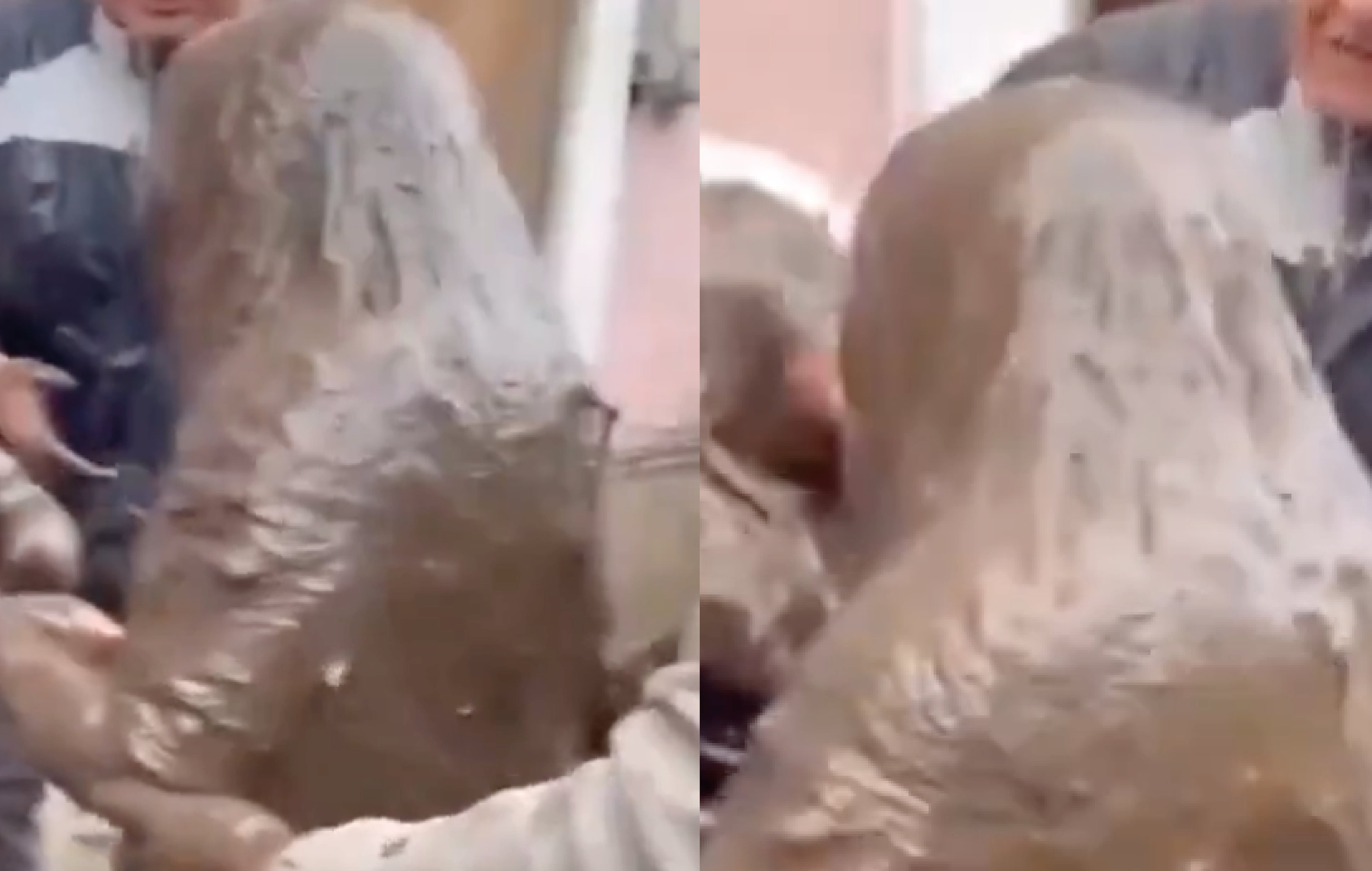 Videos compartidos por testigos y medios locales muestran el momento en que los habitantes, con ayuda de equipos de emergencia, las logran sacar del lodo.