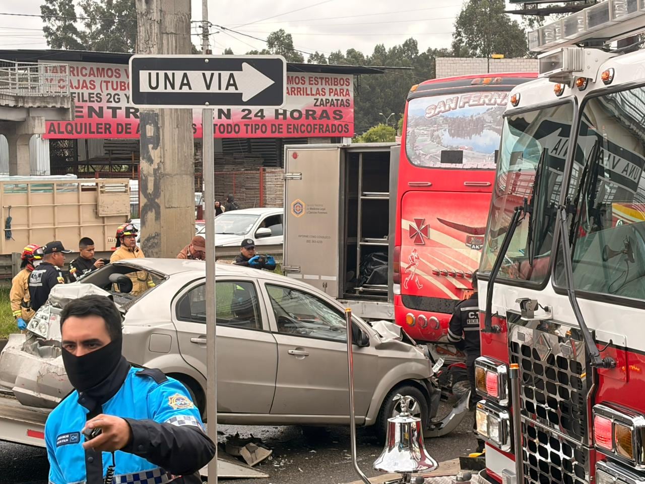 El siniestro ocurrió cuando la moto quedó atrapada entre un vehículo particular y un autobús, en una colisión que también involucró a un segundo bus, posible causante del acciente.