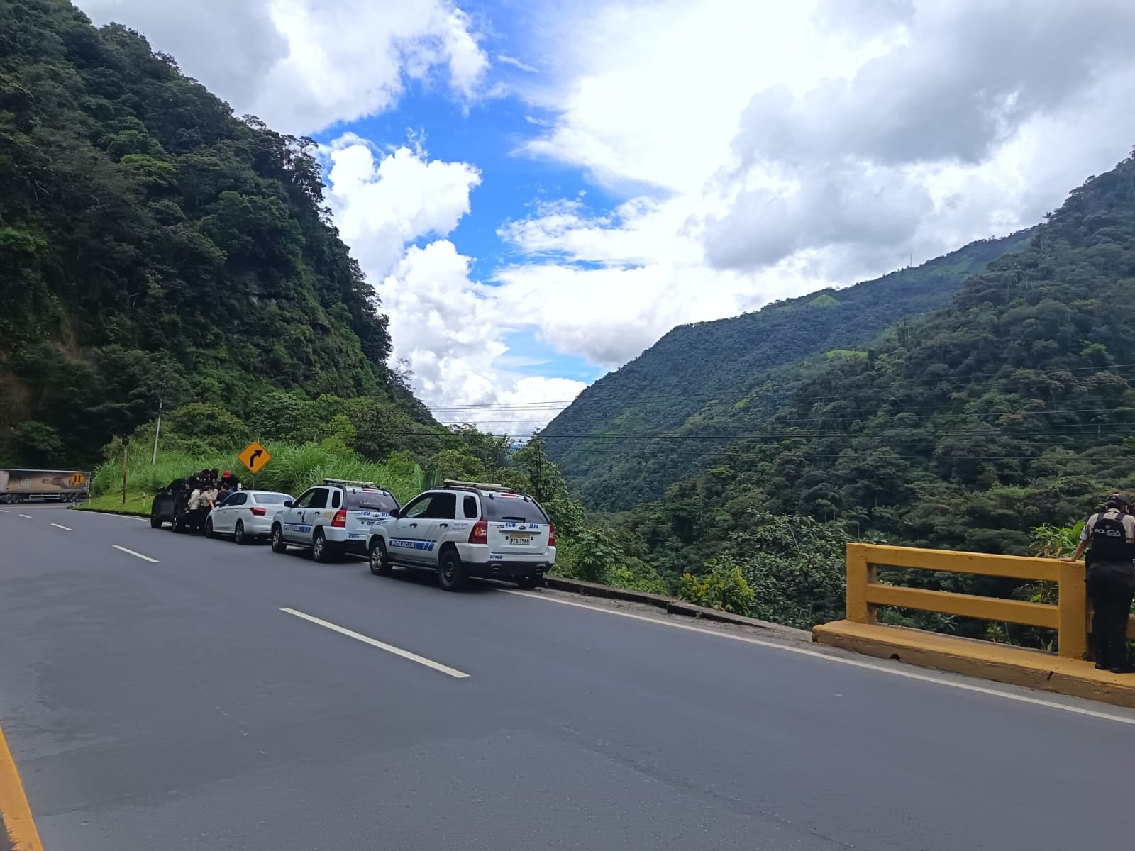 El Distrito Rumiñahui–Mejía y Dinased mantienen operativos en diferentes puntos de la vía Alóag–Santo Domingo, mientras equipos de búsqueda y rescate coordinan acciones con el ECU 911 y los Bomberos de Quito.