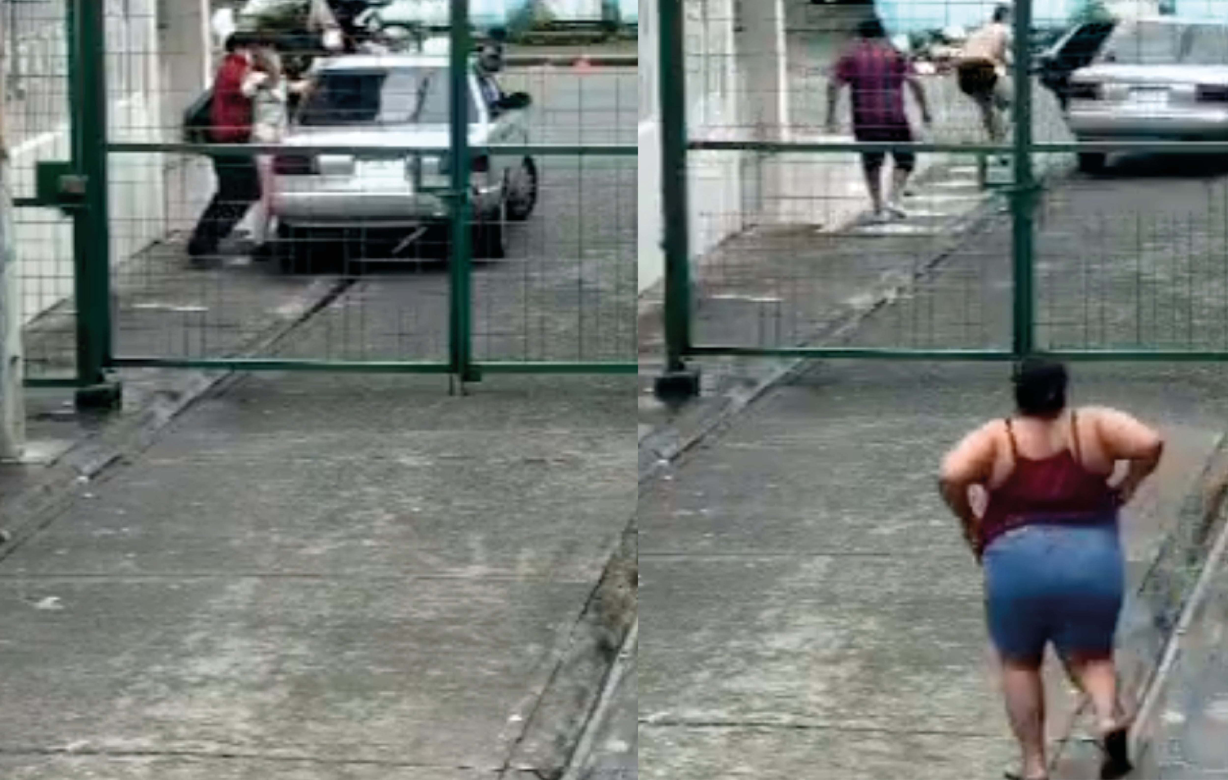 Las cámaras también captaron el momento en que un presunto familiar o conocido de la víctima intenta intervenir para evitar que se la lleven.