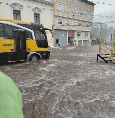Cierre vial en el centro de Quito por acumulación de agua
