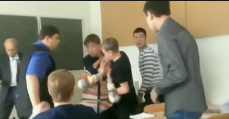 La reacción del estudiante es inmediata y violenta. Sin mediar más palabras, se levanta y arremete contra el docente frente a todos sus compañeros.