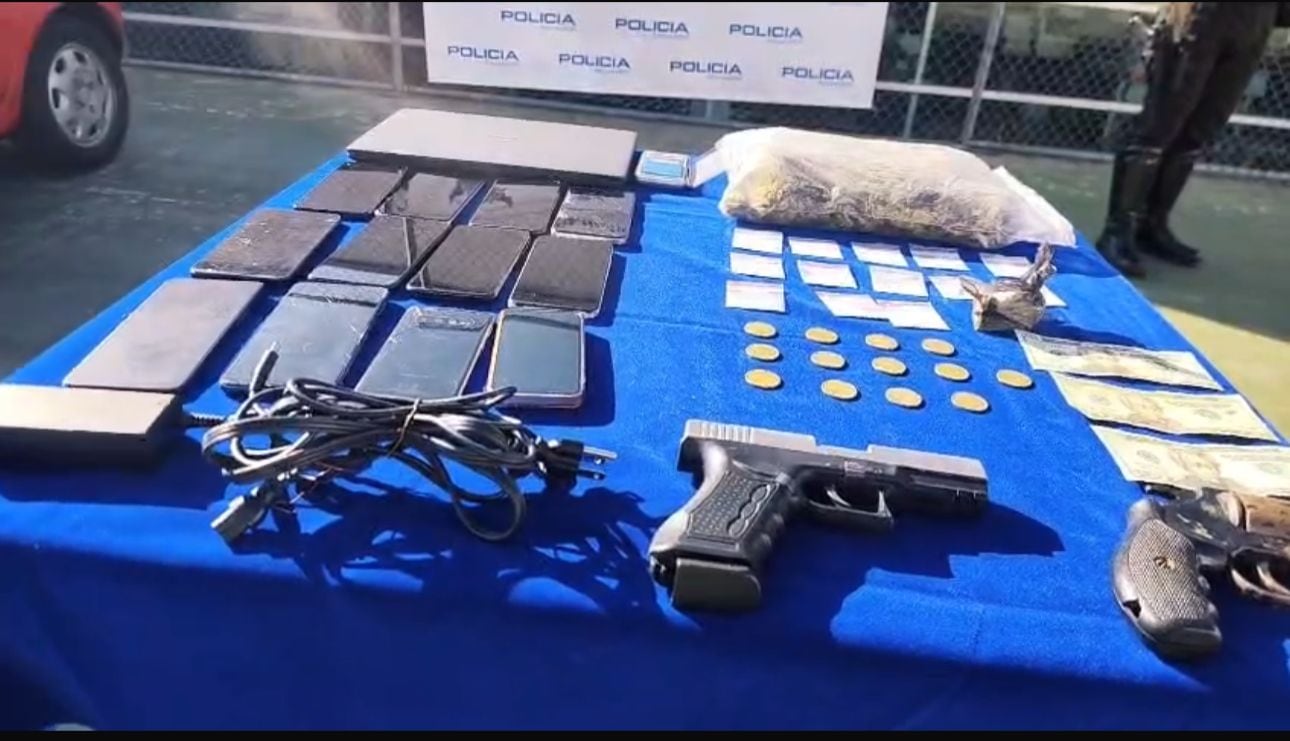 Durante el operativo, la Policía decomisó dos armas de fuego, sustancias sujetas a fiscalización, dinero en efectivo y varios dispositivos electrónicos.