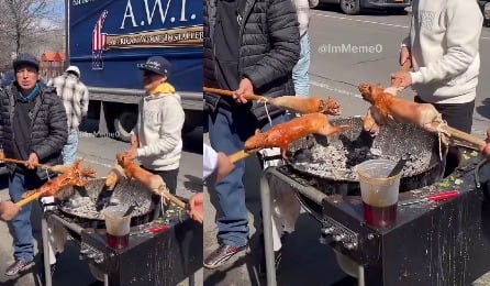 Sobre el carbón al rojo vivo, varios cuyes se asan lentamente en un fogón improvisado, tal como se preparan en reuniones familiares en Ecuador. Así se observa en un video que se volvió viral en redes sociales, donde migrantes replican esta tradición gastronómica en plena vía pública.